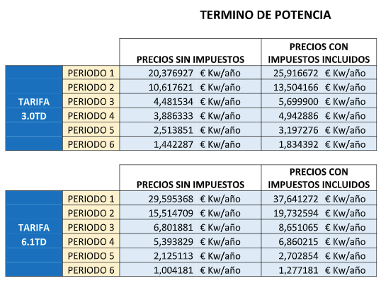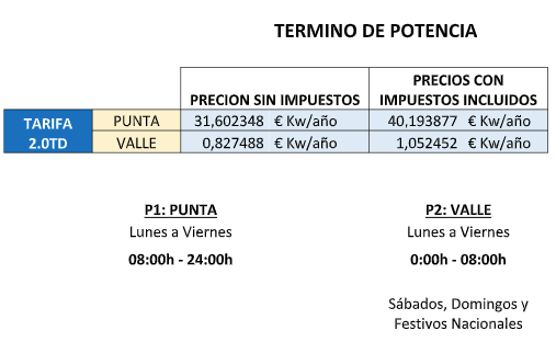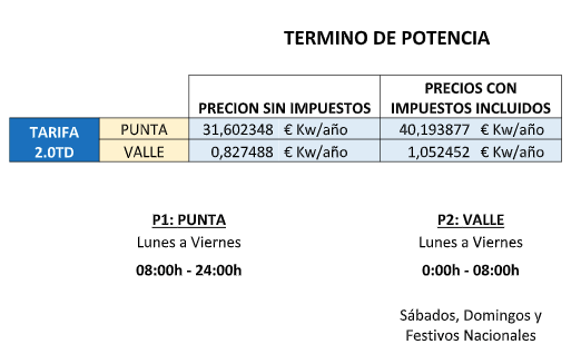 Al precio resultante del término de energía le serán de aplicación los impuestos vigentes en cada momento. Actualmente el 5,11269632% de impuesto eléctrico y el 21% de IVA.